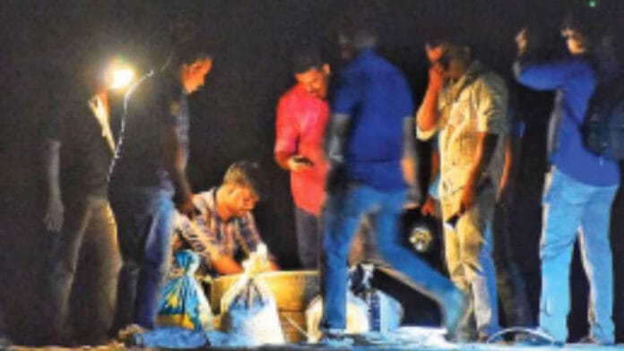 ചൊവ്വാഴ്ച സന്ധ്യക്കാണ് ആലപ്പുഴ കടപ്പുറത്ത് കപ്പൽ സ്ഥാപിച്ചതിനു സമീപത്തു നിന്ന് 75 മീറ്റർ മാറി തീരത്ത് ഇരുവശങ്ങളും അടച്ച പൈപ്പുകഷ്ണം സഞ്ചാരികളിൽ ചിലരുടെ ശ്രദ്ധയിൽപ്പെട്ടത്. സംശയം തോന്നിയതിനെത്തുടർന്ന് അവർ പൊലീസിനെ അറിയിച്ചു. ഡോഗ് സ്ക്വാഡും മെറ്റൽ ഡിറ്റക്ടറുമായി പൊലീസെത്തി നടത്തിയ പരിശോധനയിൽ ലോഹസാന്നിധ്യം കണ്ടെത്തി.