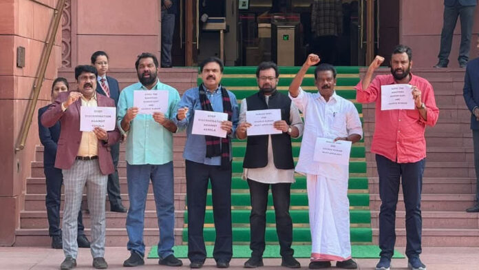 ന്യൂഡൽഹി: കേരളത്തെ തുടർച്ചയായി അപഹസിക്കുന്ന കേന്ദ്ര സഹമന്ത്രിമാരായ സുരേഷ് ഗോപിയുടെയും ജോർജ് കുര്യന്റെയും രാജി ആവശ്യപ്പെട്ട് കേരളത്തിൽ നിന്നുള്ള ഇടതുപക്ഷ എം.പിമാർ പാർലമെൻ്റിനു മുന്നിൽ പ്രതിഷേധിച്ചു. സുരേഷ് ഗോപിയും ജോർജ് കുര്യനും രാജിവച്ചൊഴിയണമെന്നും മാപ്പുപറയണമെന്നും എം.പിമാർ ആവശ്യപ്പെട്ടു.