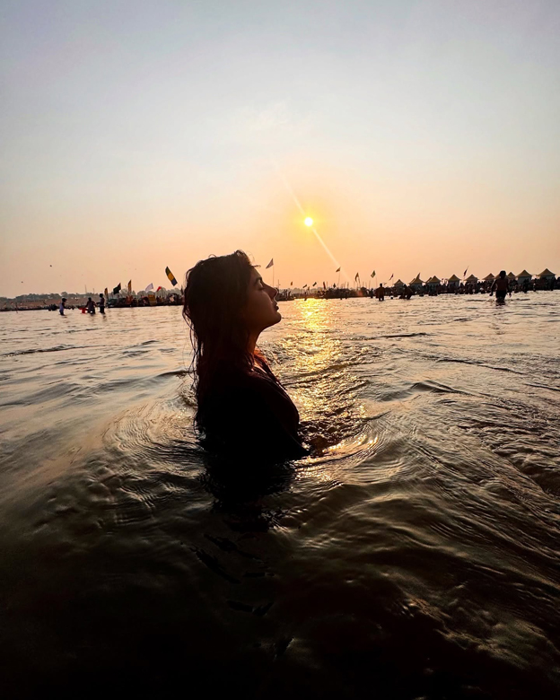 ത്രിവേണി സംഗമത്തില് മുങ്ങി സ്നാനം ചെയ്തതിന്റെ ചിത്രങ്ങള് നടി തന്നെയാണ് സമൂഹമാധ്യമങ്ങളില് പങ്കുവച്ചത്. വിശാലമായ സംസ്കാരത്തെ വിലമതിക്കുന്നു എന്നാണ് സ്നാനത്തിനു ശേഷം സംയുക്ത കുറിച്ചത്.