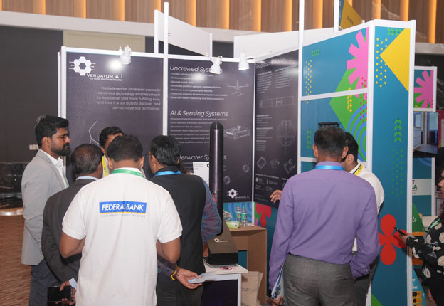 ഇന്ത്യയിലെ ഏറ്റവും ചടുലമായ സ്റ്റാര്ട്ടപ്പ് ആവാസവ്യവസ്ഥ കേരളമാണെന്നതിന്റെ സാക്ഷ്യപത്രമാണ് പ്രദര്ശനത്തിലുള്ളത്. എക്സ്.ആര്. ഹൊറൈസണ്സ്, സെന്ട്രിഫ്, നാട്യ, സീപോഡ്സ്, റൂമിന്ഡോ, ഡോക്കര്വിഷന്, ഭൂഷണ്സ് ജൂനിയര്, ആക്രി, എന്ട്രി, വെബ്സി ആർ.എസ്., ക്യൂ ഓര്ട്, ഡ്രിസിലിന്, ബന്സന് സ്റ്റുഡിയോ, പ്രോഫേസ്, ഗ്രോകോണ്സ്, സിസ്റ്റ ടെക്നോളജീസ് എന്നീ സ്റ്റാര്ട്ടപ്പുകളാണ് സ്റ്റാളുകള് ഒരുക്കിയിട്ടുള്ളത്.