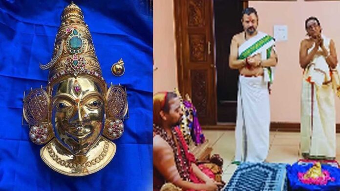 ബുധനാഴ്ചയാണ് ലക്ഷ്മി നാരായണ സ്വർണമുഖം ക്ഷേത്രത്തിൽ സമർപ്പിച്ചത്. സ്വർണത്തിന് പുറമെ മുഖാവരണത്തിൽ രത്നങ്ങളും പവിഴങ്ങളും പതിപ്പിച്ചിട്ടുണ്ട്. 45 വർഷം മുമ്പ് ദേവിക്ക് സ്വർണമുഖം സമർപ്പിക്കുന്നതായി സ്വപ്നം കണ്ടിരുന്നെന്നും ഇപ്പോൾ അത് നിറവേറ്റിയെന്നും ലക്ഷ്മി നാരായണ പറഞ്ഞു.