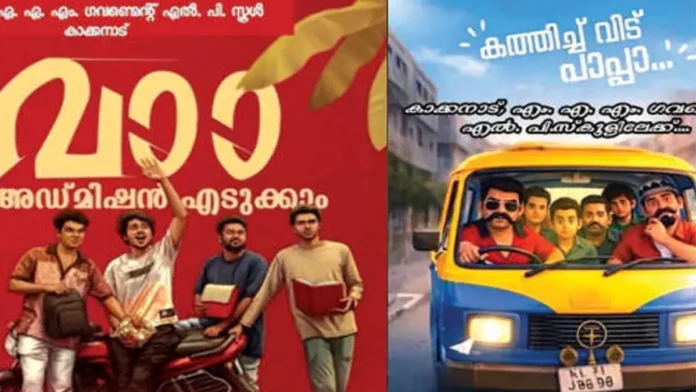 യുവതലമുറയ്ക്കിടയിൽ വലിയ തരംഗമായ ‘വാഴ-2’ എന്ന സിനിമയുടെ ശൈലിയിൽ ‘വാാ… അഡ്മിഷൻ എടുക്കാം’എന്ന പോസ്റ്ററാണ് ഇതിലൊന്ന്. കൂടാതെ, ‘ആട്’ സിനിമയിലെ ഷാജി പാപ്പനെയും സംഘത്തെയും ഓർമ്മിപ്പിക്കുന്ന രീതിയിലുള്ള രണ്ടാമത്തെ പോസ്റ്ററും വൈറലായി. ‘കത്തിച്ച് വിട് പാപ്പാ’.. കാക്കനാട് എം.എ.എ.എം. ഗവ. എൽ.പി. സ്കൂളിലേക്ക്’ എന്ന തലക്കെട്ടോടെയുള്ള ഈ പരസ്യം ഇതിനോടകംതന്നെ ജനശ്രദ്ധ പിടിച്ചുപറ്റിക്കഴിഞ്ഞു.